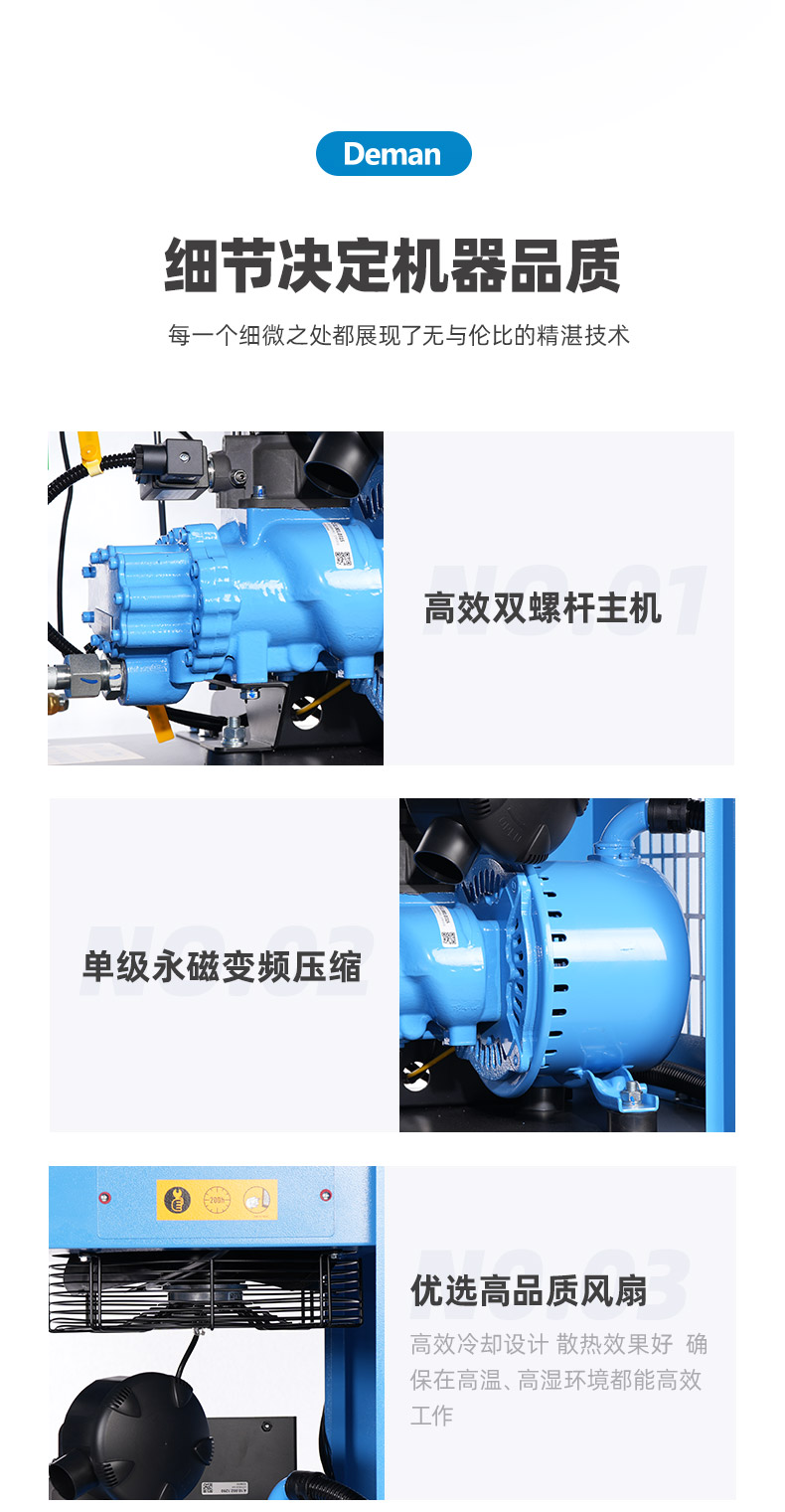 德曼压缩机集空气压缩机科研开发、生产制造、销售服务于一体,长期服务机械、印刷、化工、电力、食品、医药、纺织、仪表、电子等行业。